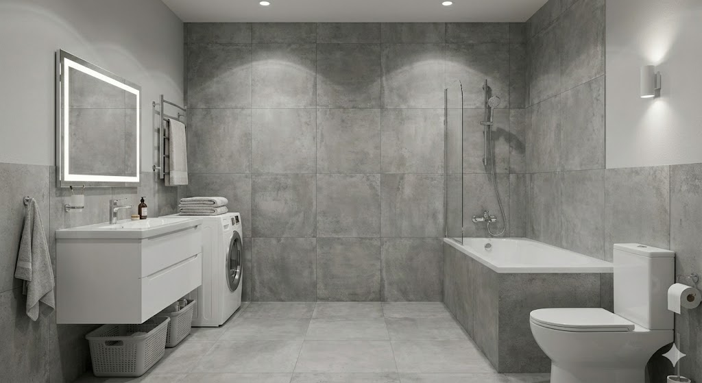 Когда технология соблюдена, вы получаете тот самый вау-эффект. Крупноформатный керамогранит с минимальными швами создает ощущение бесконечного пространства. Такое монолитное покрытие визуально «раздвигает» стены и делает интерьер дороже.